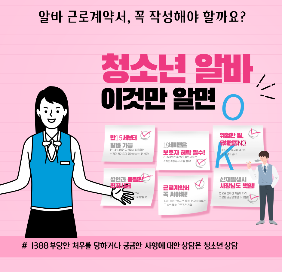 | 근로계약서 작성 시 필요 서류 | 법정후견인 동의서 및 가족관계증명서 필요 |