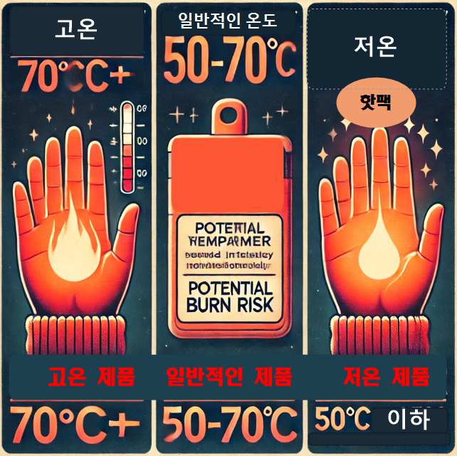 - 매우 높은 온도를 제공하는 제품: 70도 이상으로 올라가며, 사용 시 화상의 위험이 있어 주의가 필요합니다.