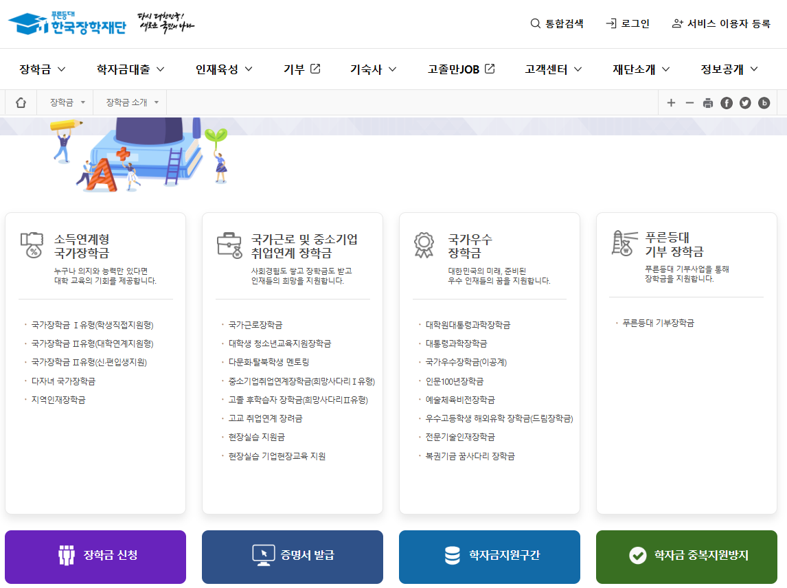 - 1단계: 한국장학재단 홈페이지에서 회원가입 후 로그인.