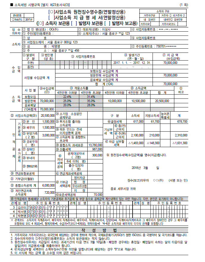 - 사업소득 원천징수영수증