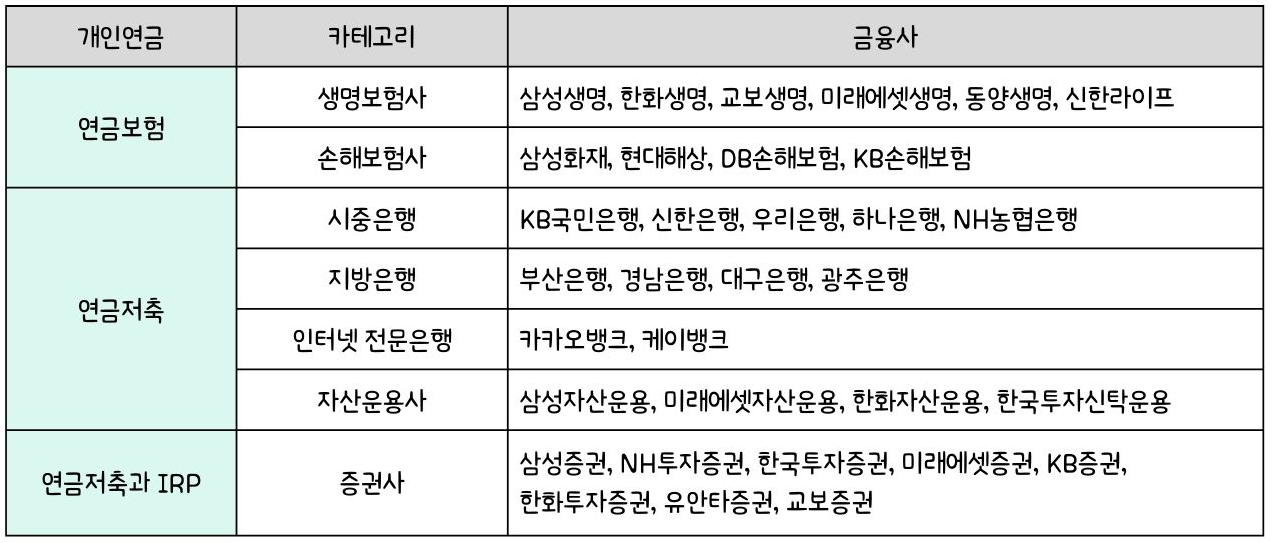 💭 개인연금 취급 금융 기관