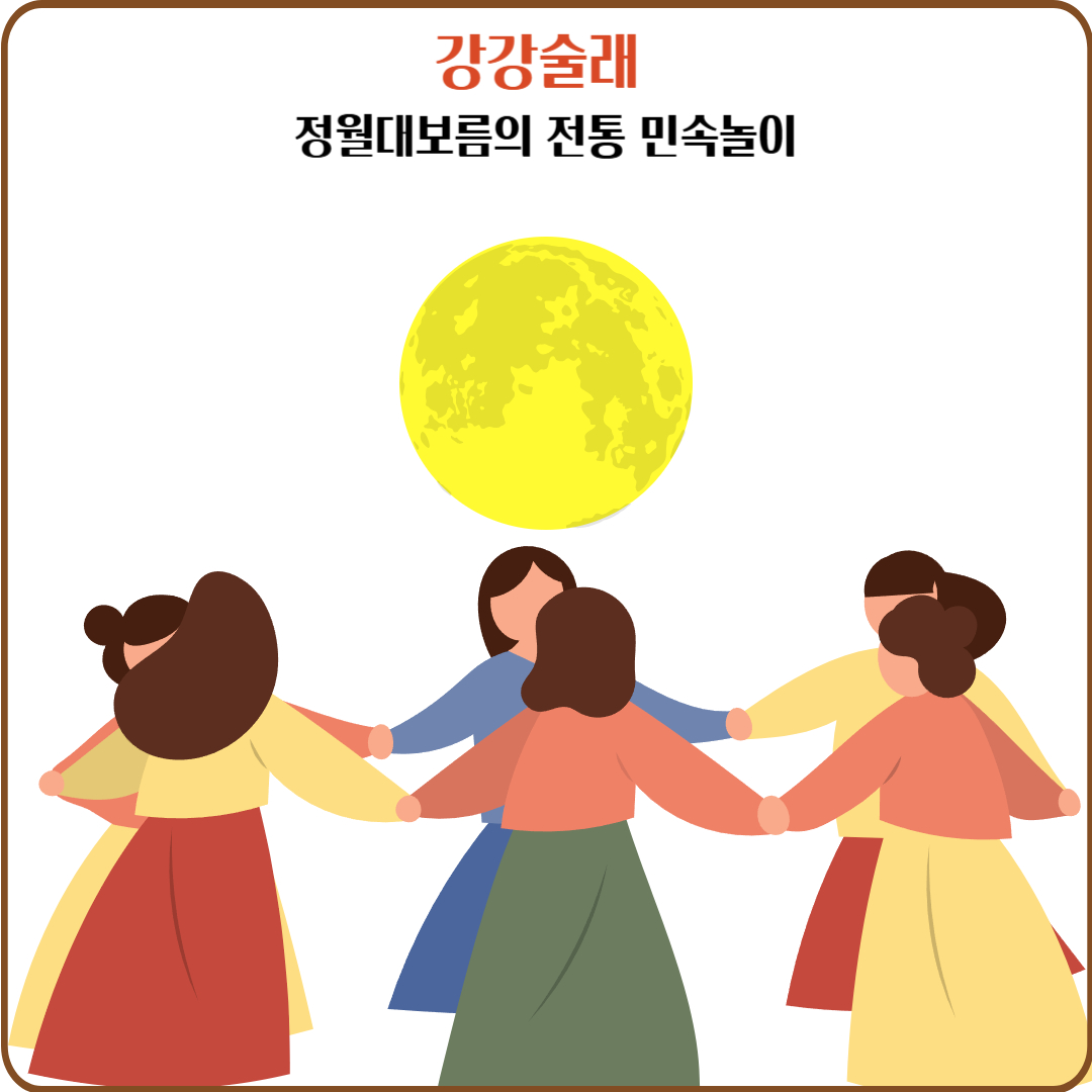 추석날 밤, 마을의 여성들이 넓은 마당이나 평지에 모여 손을 맞잡고 원을 그리며 춤을 춥니다.