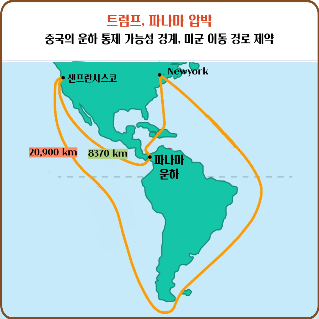 파나마 운하는 태평양과 대서양을 연결하는 주요 해상 무역로로, 미군의 전략적 이동과 세계 물류 흐름에 중요한 역할을 합니다.