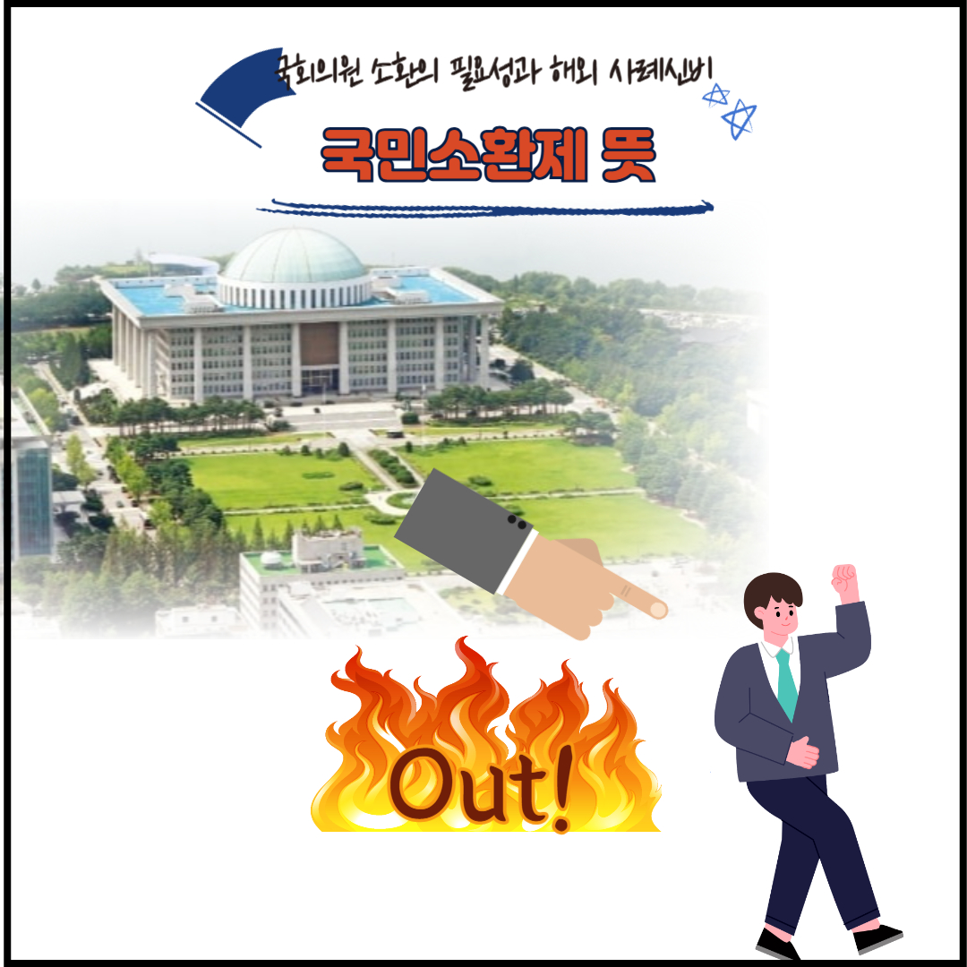 - 미국, 대만, 영국 등 일부 국가에서는 국민소환제가 존재하며, 실제로 선출직 공직자가 소환된 사례도 있음.