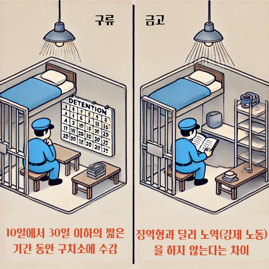 | 구류 | 단기적인 감금형 (1일~30일 이하) | 경미한 폭행, 소란 행위 주로 경범죄에 적용 |