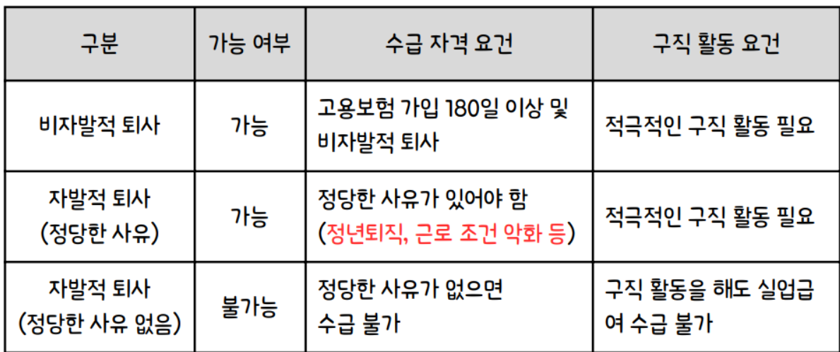 - 퇴사 사유가 비자발적일 것 (예: 정년퇴직, 계약만료, 회사 사정으로 권고사직 등)