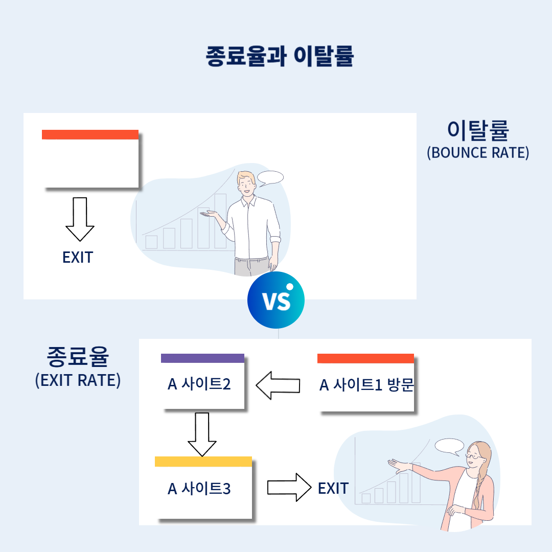종료율과 이탈율(bounce rate)은 비슷해 보이지만, 실제로는 다른 개념입니다.