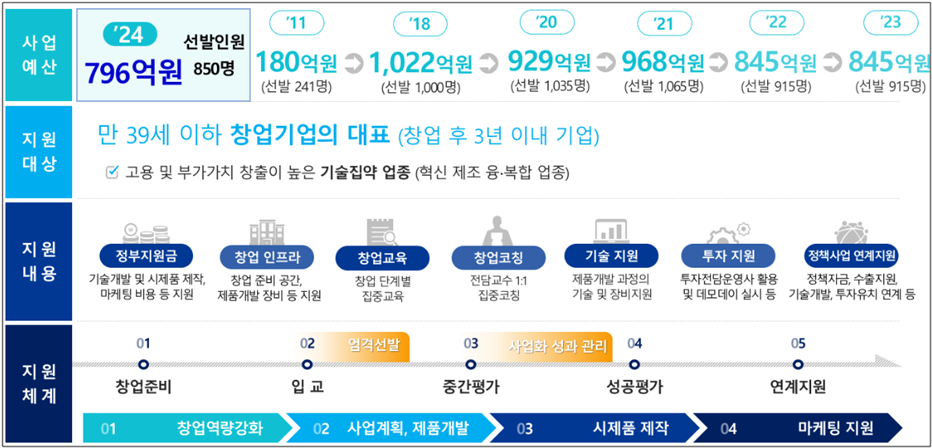 - 사업 예산: 2024년에는 796억 원의 예산이 책정되었으며, 총 850명의 청년 창업자가 선발됩니다.