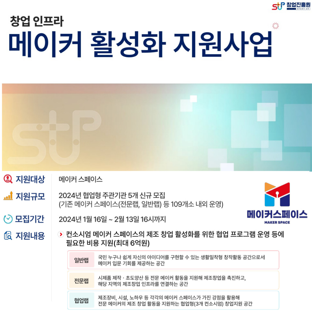 - 지원 대상: 메이커 스페이스