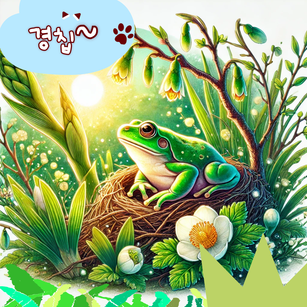 동면하던 생명들이 깨어난다는 뜻을 지닌 절기가 경칩(驚蟄)입니다. 경칩은 봄을 알리는 24절기 중 세 번째 절기로, 입춘과 우수를 지나 따뜻한 기운이 온 세상에 퍼지기 시작하는 시기입니다. 이름 그대로 '경칩'은 깨어난다는 의미의 '경(驚)'과 겨울 동안 땅속에 숨었던 벌레를 뜻하는 '칩(蟄)'이 결합된 말로, 땅속에 겨울잠을 자던 벌레가 땅을 뚫고 나온다는 뜻을 담고 있습니다.