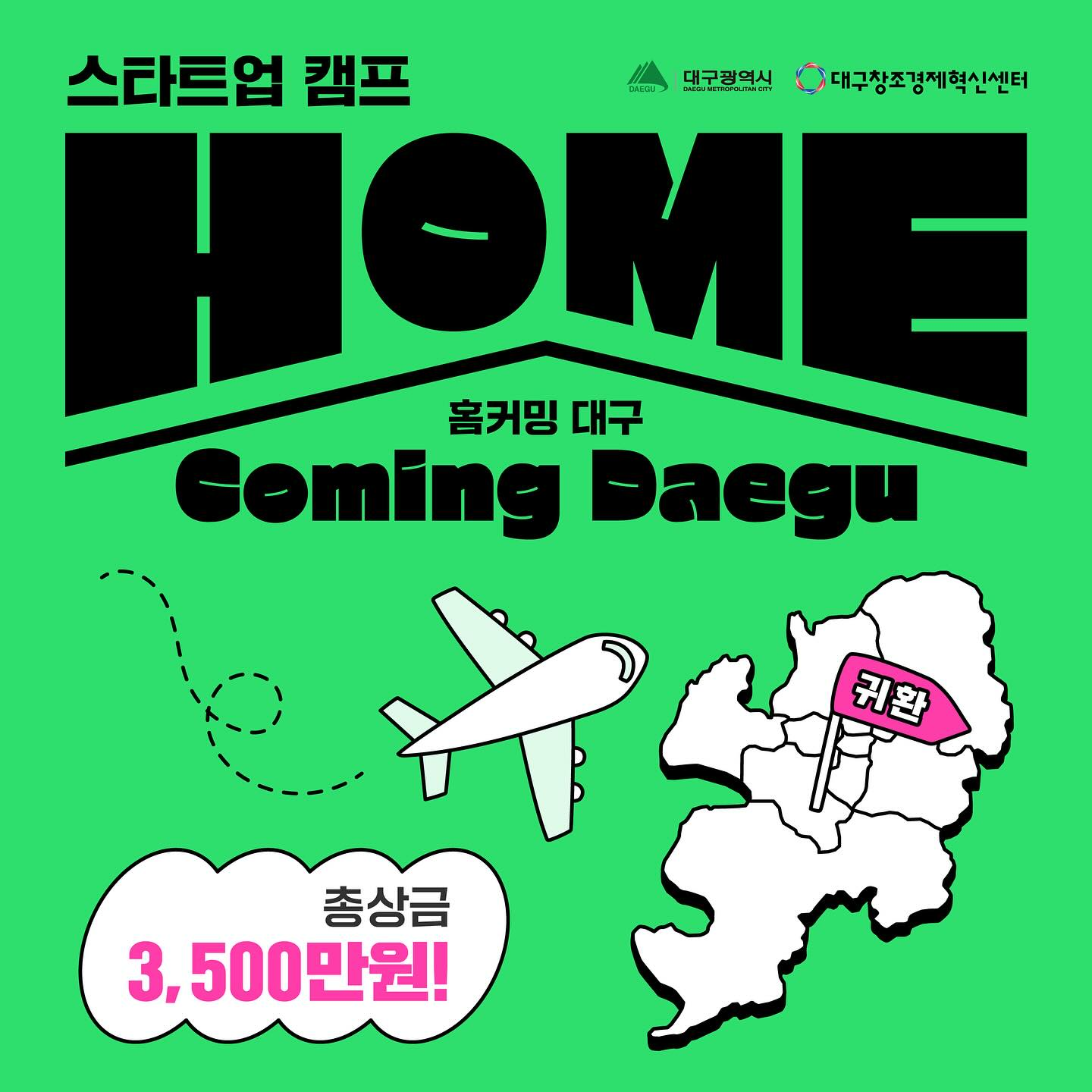 대구광역시와 대구창조경제혁신센터에서는 대구를 떠난 출향청년 및 지역외 청년이 창업을 통해 대구로 유입될 수 있도록 우수한 아이디어를 보유한 청년 예비(기)창업자를 발굴하여 및 사업화 자금 및 거주ㆍ창업공간 지원을 통해 지역 내 청년창업 활성화, 일자리 창출 등에 기여하고자 「스타트업캠프 '홈커밍대구'」에 참여할 청년 예비(기)창업자 모집을 다음과 같이 공고합니다.