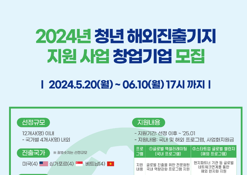 2024년 청년 해외진출기지 지원 사업 창업기업 모집