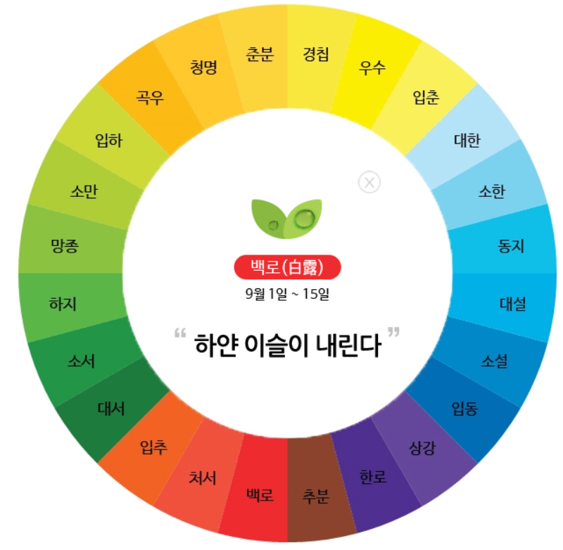 | 계절특징 | 하얀 이슬이 내린다. |