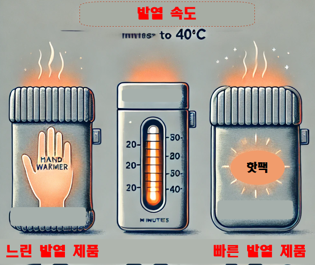 - 느린 발열 제품: 30분 이상 시간이 걸리며, 초기에 온도가 천천히 오르는 경향이 있습니다.