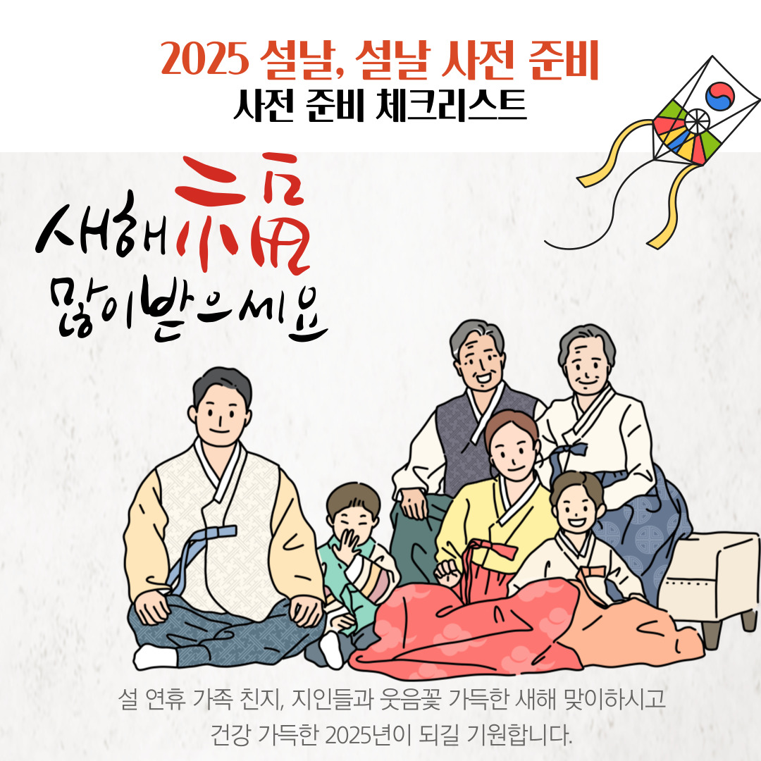 설날을 준비하면서 바쁜 일정을 미리 정리하면 명절 스트레스도 줄이고, 가족과 여유로운 시간을 보낼 수 있습니다. 아래는 설날 전 미리 해야 할 일들을 정리한 리스트입니다.