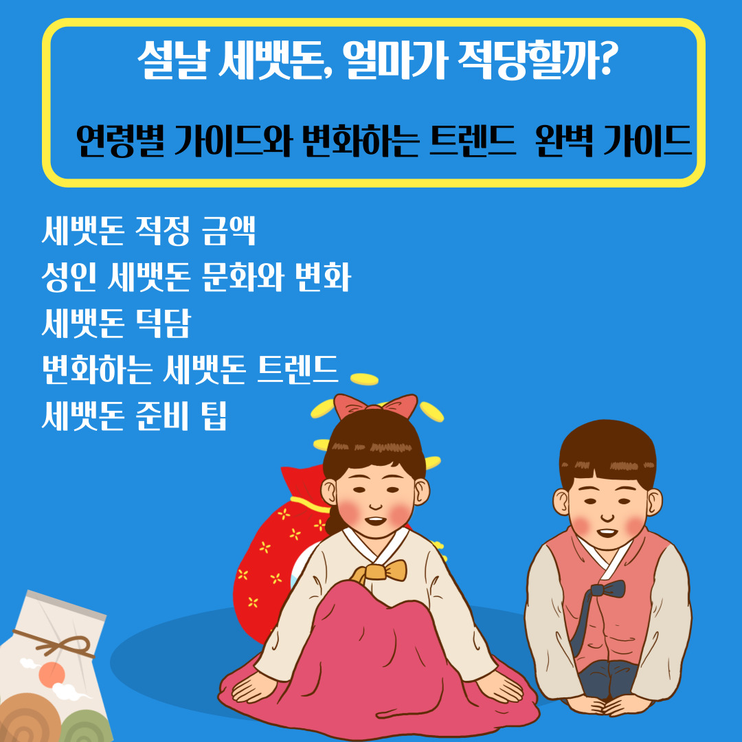 연령별로 세뱃돈 금액을 정하고, 새 지폐를 준비하는 것이 좋습니다. 은행이나 고속도로 휴게소 이동점포에서 신권 교환이 가능합니다. 신권 대신 깨끗한 지폐를 다림질로 정리하는 것도 대안입니다. 세뱃돈 봉투는 전통적인 디자인과 심플한 스타일 중 선택해 미리 준비해 두세요.