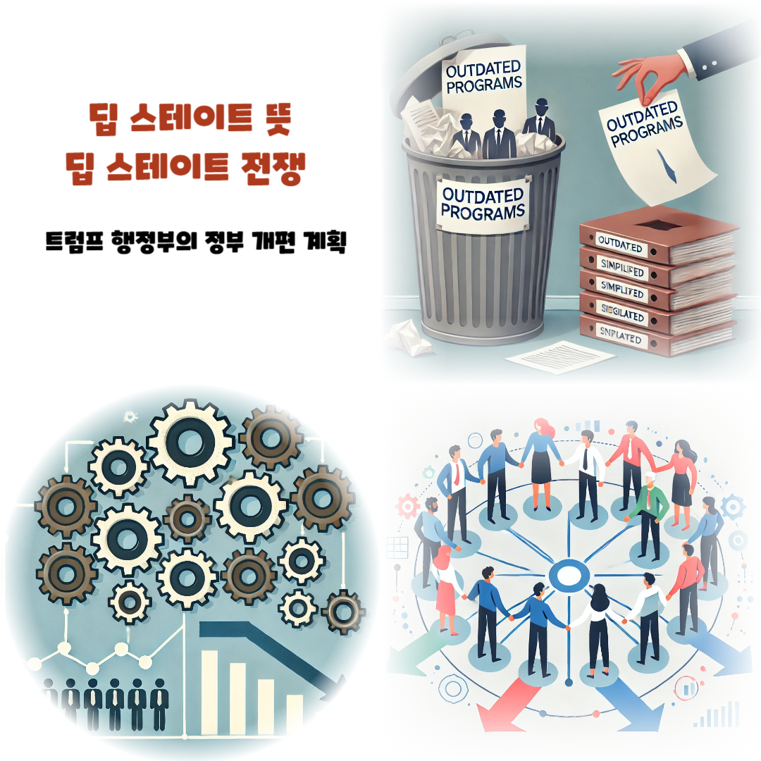 트럼프 대통령은 정부 내 권력 집중과 관료적 장벽, 즉 이른바 '딥 스테이트(Deep State)'를 해체하겠다는 강력한 의지를 피력했습니다. 이와 관련된 주요 전략은 다음과 같습니다.