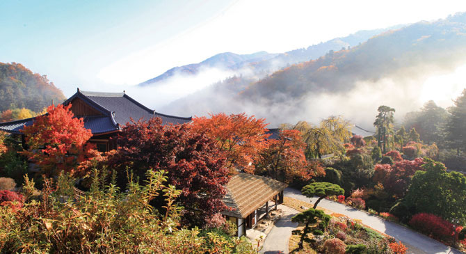 아침고요수목원의 단풍은 가을철 방문객들에게 한국 자연의 고요한 아름다움을 전달해주는 대표적인 단풍 명소입니다.