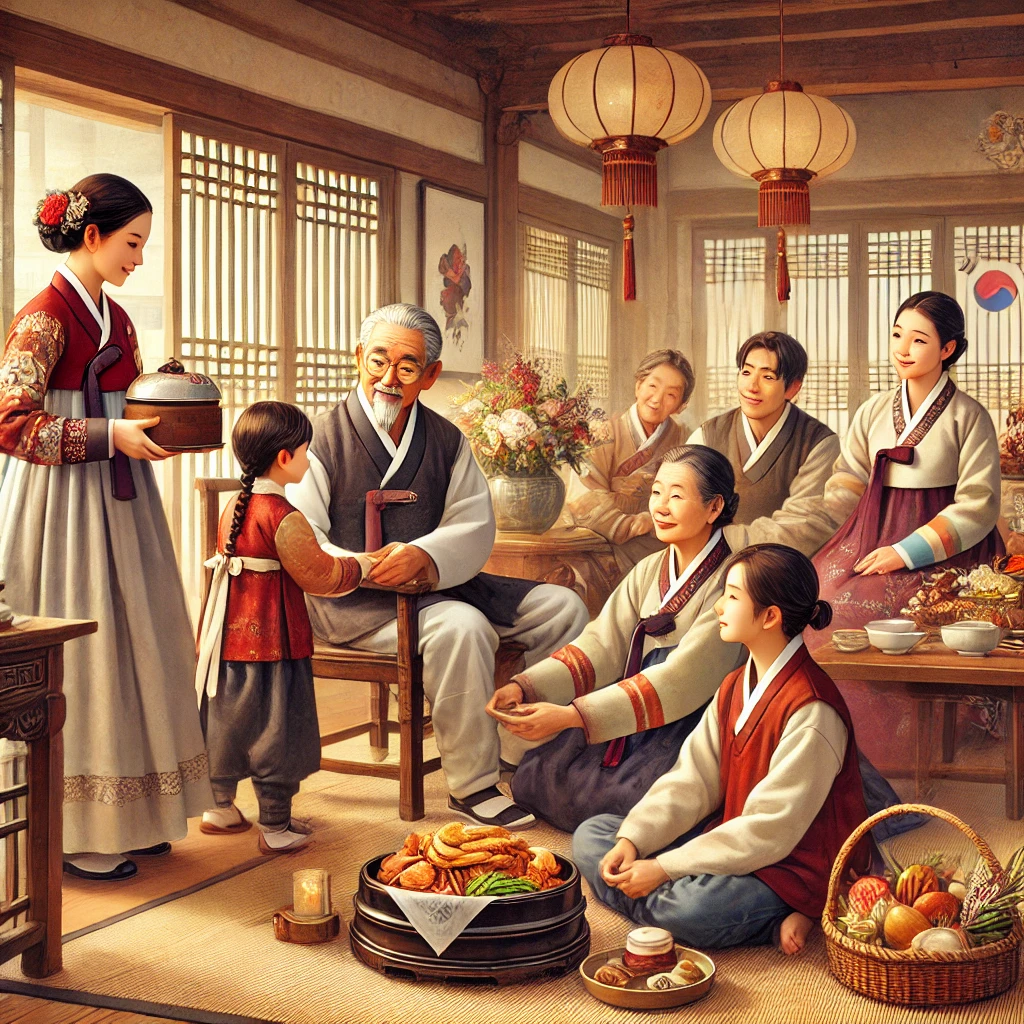 - 노인 초대와 대접: 준비된 음식을 마을의 노인들에게 대접하는 시간이 마련되었습니다. 가족 단위로는 집안의 어른들에게 음식을 올리고, 마을 단위로는 여러 노인들이 함께 모여 식사를 하며 담소를 나누었습니다. 이 자리는 단순히 음식을 대접하는 것뿐 아니라, 노인들의 지혜와 경험을 나누고, 그들의 이야기를 경청하는 자리가 되었습니다.